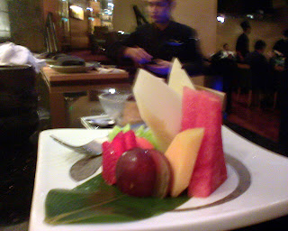 Compared to last month, the mochi this time around were covered in nutty gratings and served lukewarm which only made they much sweeter and softer than last month's version (still somewhere between the bitey gyuchi mochi from last month and the runny chinese ones we get from hawker stall). Definitely worth a few more pieces. Check out the fruit platter I got, must have been the biggest one since I frequented this place.